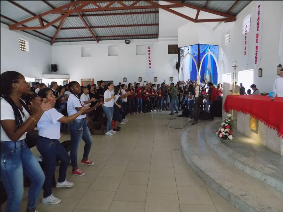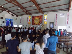 As Paulinas da comunidade de Cali, em comunhão com a Pastoral juvenil da Arquidiocese, participaram da celebração de Pentecostes, partilhando com 300 jovens de vários grupos juvenis da cidade, a festividade de Maria Rainha dos Apóstolos e a prospectiva carismática da Mensagem do Papa Francisco: A verdade vos tornará livres. Fake news e jornalismo de Paz.