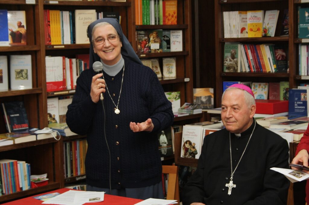 Etait présente aussi à la rencontre sr Gloria Angelini, Vicaire provinciale des Filles de Saint Paul, qui a lu un petit passage des écrits du bienheureux Jacques Alberione, dans lequel il parle de la librairie comme d’un temple, du libraire comme un prédicateur et du comptoir comme d’un pupitre de vérité. Et juste la dimension de la librairie comme temple a été soulignée par l’évêque dans les paroles qu’il a adressées aux présents, une trentaine de personnes entre appartenant à la Famiglia Paulinienne (Coopérateurs, Annunziatines, Institut Sainte Famille et divers clients affectionnés clients.