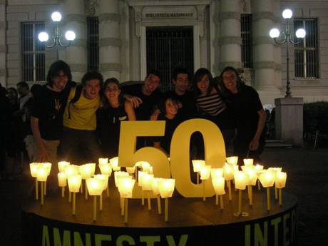 Una candela circondata da filo spinato. Una fiamma che “non brucia per noi, ma per tutte quelle persone che non siamo riusciti a salvare dalla prigione, che sono state uccise, torturate, rapite o sono scomparse”. È questo il simbolo che accompagna i 50 anni di Amnesty International, il movimento mondiale a favore dei diritti umani.