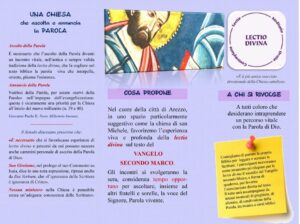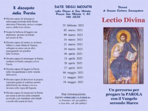O Domingo da Palavra, instituído pelo Papa Francisco para repropor a centralidade da Sagrada Escritura, celebrado na Catedral de Arezzo, em 24 de janeiro passado, não podia ser um acontecimento isolado, mas um percurso com objetivos bem específicos. Com uma vigília de oração, no dia 18 de maio, na Igreja de São Miguel, em Arezzo, foi iniciado o ciclo de encontros da Lectio divina sobre passagens do Evangelho de Marcos, organizado pela equipe “Rezando a Palavra”, com a presença e orientação de duas Filhas de São Paulo: Ir. Francesca Pratillo e Ir. Nadia Bonaldo. O percurso teve 13 encontros semanais, (iniciados em 23 de fevereiro. Todos “presenciais”, respeitando o protocolo anti-Covid-19) respondeu a um pedido específico do Arcebispo Riccardo Fontana e do Sínodo diocesano para favorecer “experiências de Lectio divina e modalidades pelas quais podem também surgir caminhos pessoais de escuta da Palavra de Deus”. A Lectio divina, dirigida por Ir. Francesca pode ser também acompanhada e ouvida ao vivo na página do Facebook: https://www.facebook.com/pregarelaParola.