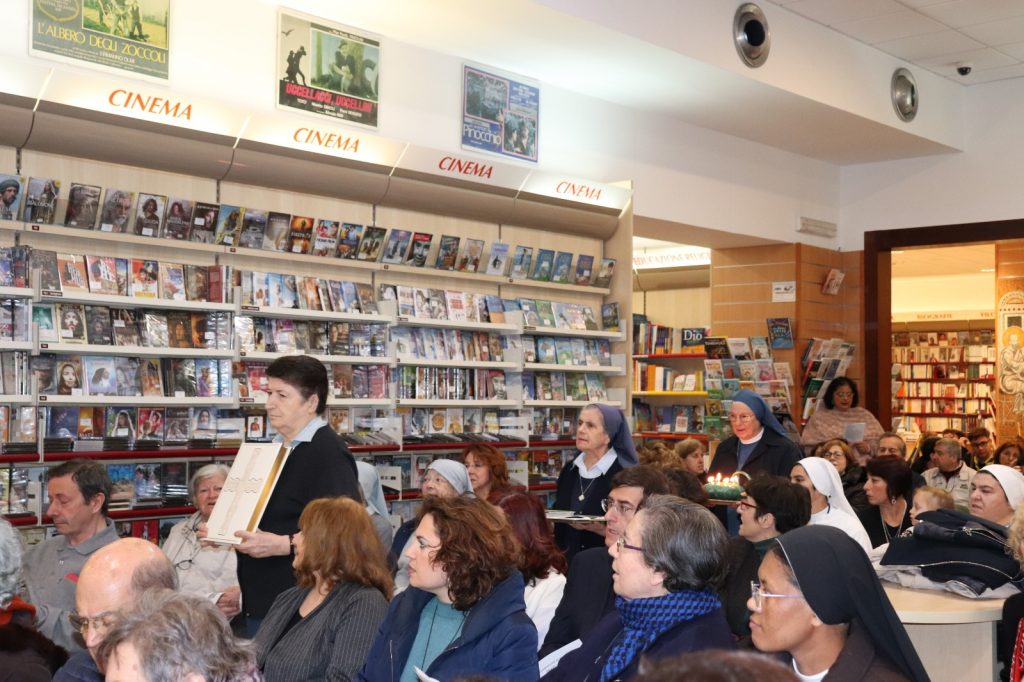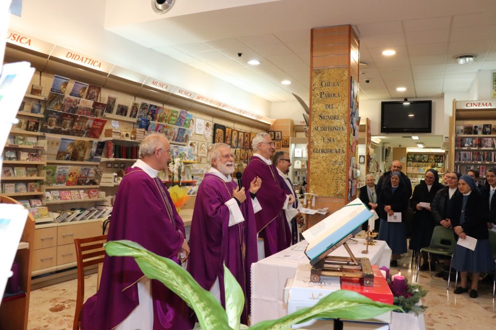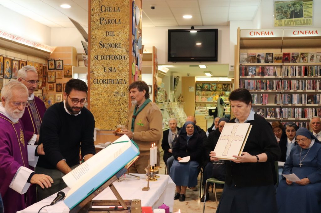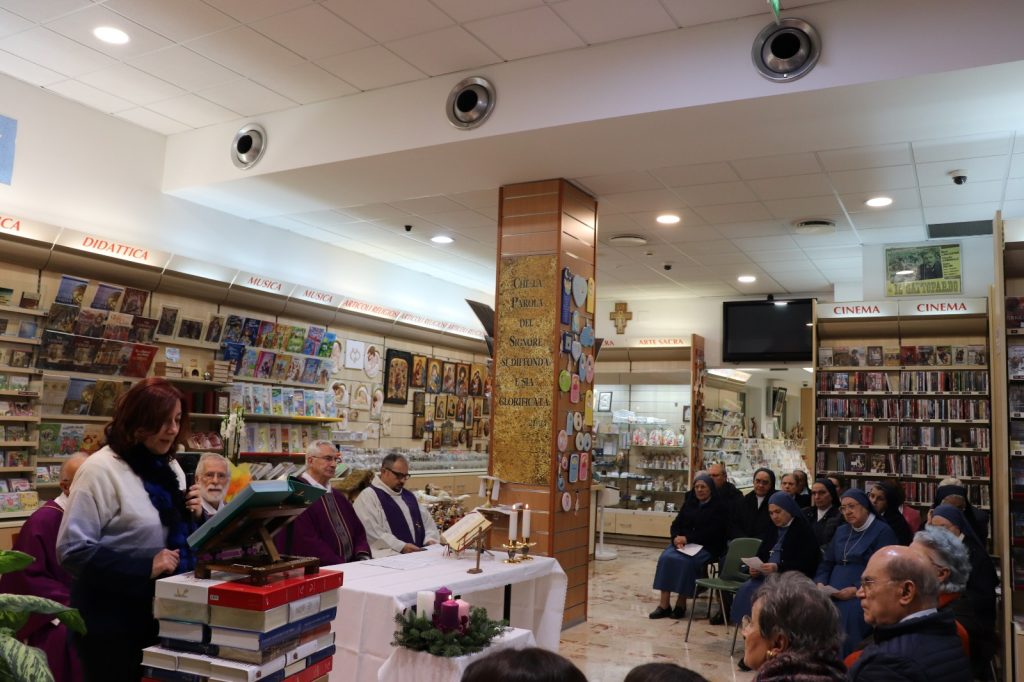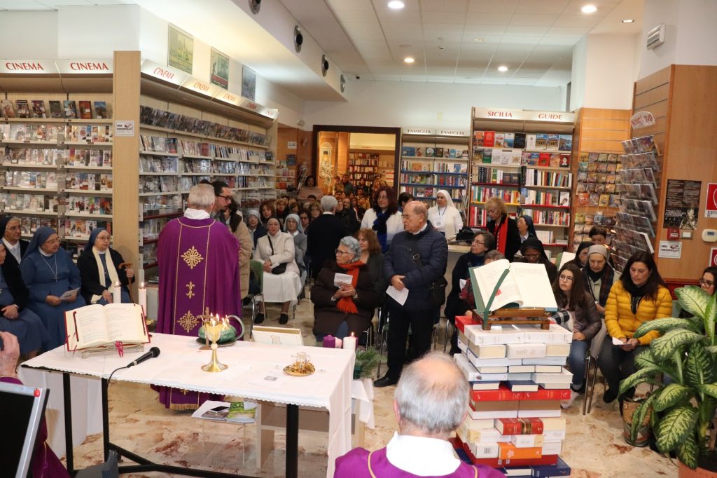 Muitas pessoas participaram, com alegria e estima, da celebração eucarística, realizada na Livraria por ocasião da celebração dos “primeiros” 90 anos de presença em Palermo. As irmãs da comunidade escrevem: “Esta benevolência, além de ser boa para o coração, estimula-nos a continuar nosso serviço com grande empenho, pois acreditamos que o carisma paulino não pode “envelhecer”, pois está sempre atento à Palavra de Deus e às potencialidades humanas, desenvolvendo com criatividade novas formas de comunicação. Os mil rostos da atividade paulina no mundo testemunham a paixão pelo Evangelho, a “Boa Notícia”. Por esses 90 anos de “milagres” e inúmeras graças, os agradecimentos brotam espontâneos de nosso coração: desde a terra da Sicília à cidade de Palermo, aos seus pastores, aos amigos e colaboradores”.