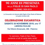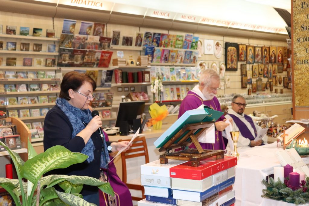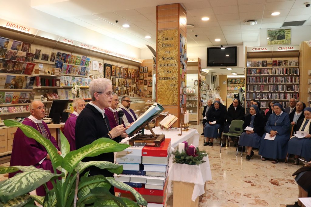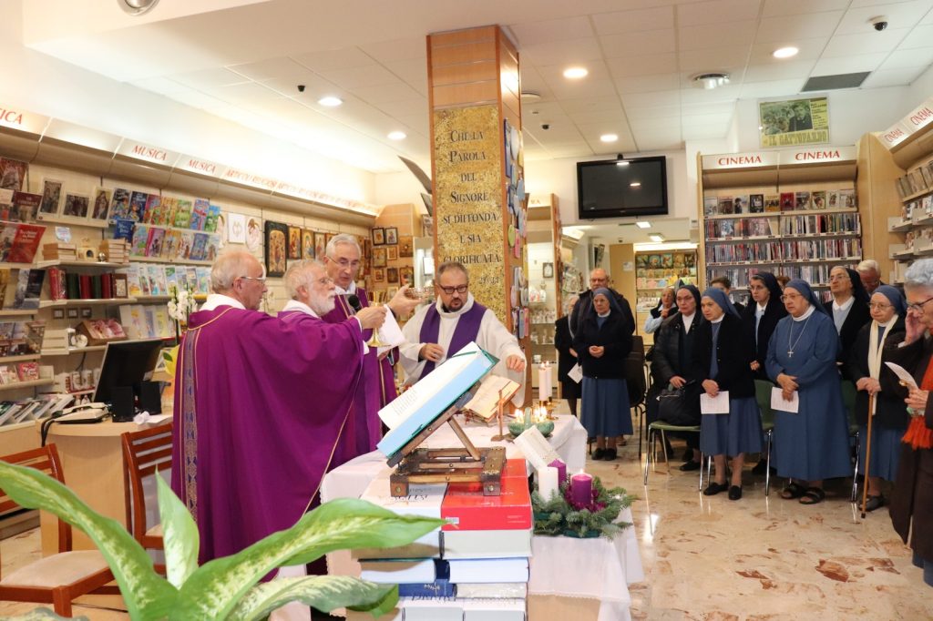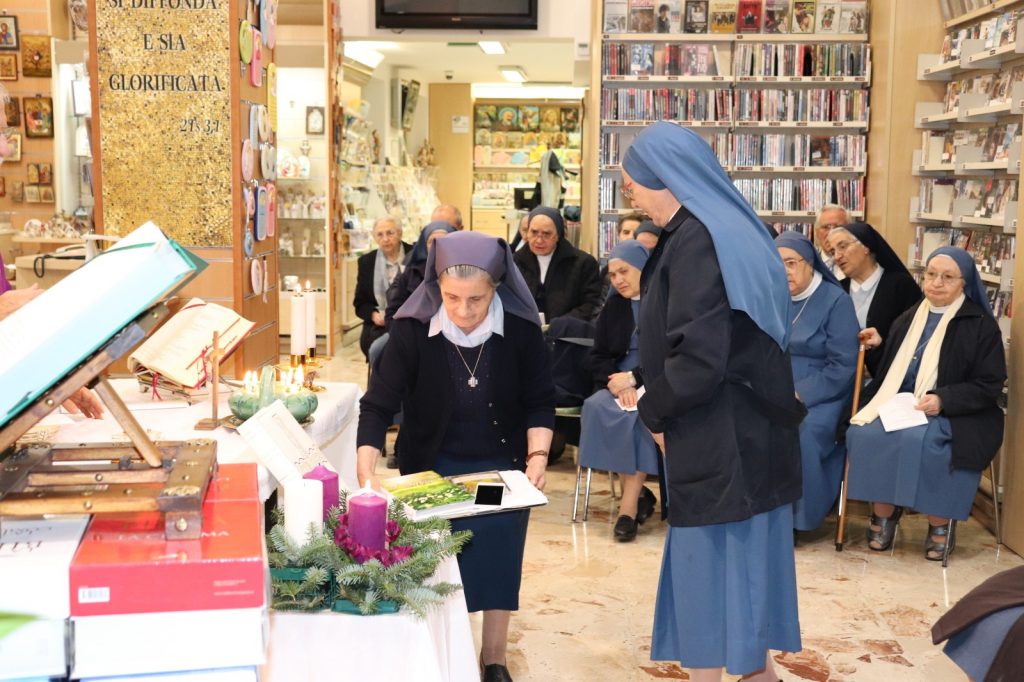 Muitas pessoas participaram, com alegria e estima, da celebração eucarística, realizada na Livraria por ocasião da celebração dos “primeiros” 90 anos de presença em Palermo. As irmãs da comunidade escrevem: “Esta benevolência, além de ser boa para o coração, estimula-nos a continuar nosso serviço com grande empenho, pois acreditamos que o carisma paulino não pode “envelhecer”, pois está sempre atento à Palavra de Deus e às potencialidades humanas, desenvolvendo com criatividade novas formas de comunicação. Os mil rostos da atividade paulina no mundo testemunham a paixão pelo Evangelho, a “Boa Notícia”. Por esses 90 anos de “milagres” e inúmeras graças, os agradecimentos brotam espontâneos de nosso coração: desde a terra da Sicília à cidade de Palermo, aos seus pastores, aos amigos e colaboradores”.