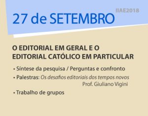 O editorial em geral e o editorial católico em particular • Síntese da pesquisa / Perguntas e confronto • Palestra: Os desafios editoriais dos tempos novos Prof. Giuliano Vigini, ensaísta e docente de sociologia da editoria contemporânea na Universidade Católica do Sagrado Coração de Milão • Trabalhos de grupo