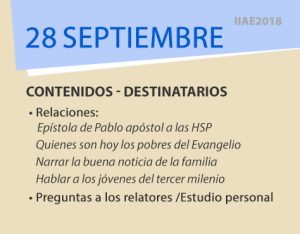 Contenidos – Destinatarios • Relaciones: Epístola de Pablo apóstol a las HSP prof. Lidia Maggi, pastora bautista, biblista y teóloga Quienes son hoy los pobres del Evangelio                   doct. Luigi Accattoli, periodista Narrar la buena noticia de la familia doct. Francesco Belletti, docente, director del Cisf (Centro internacional estudios familia) Hablar a los jóvenes del… Leer más »