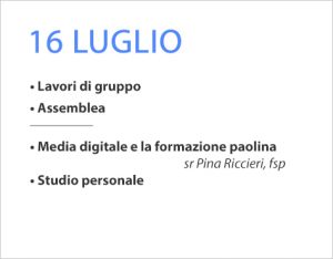 • Lavori di gruppo • Assemblea _________________ • Media digitale e la formazione paolina    sr Pina Riccieri, fsp • Studio personale