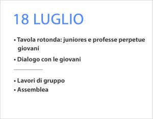 • Tavola rotonda: juniores e professe perpetue giovani • Dialogo con le giovani ___________________ • Lavori di gruppo • Assemblea