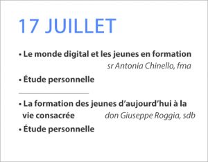 • Le monde digital et les jeunes en formation    sr Antonia Chinello, fma • Étude personnelle ___________________________ • La formation des jeunes d’aujourd’hui à la vie consacrée don Giuseppe Roggia, sdb •Étude personnelle