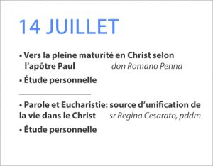 • Vers la pleine maturité en Christ selon l’apôtre Paul don Romano Penna • Étude personnelle _____________________ • Parole et Eucharistie: source d’unification de la vie dans le Christ sr Regina Cesarato, pddm • Étude personnelle