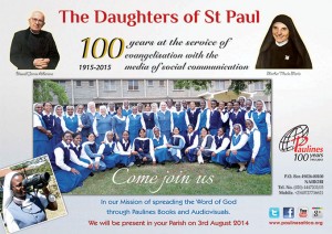 Our sisters of Mozambique celebrated the Centenary of the Pauline Family in a simple and beautiful way on 24 August 2014 in Our Lady of Victory Parish, Maputo…