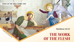 Joseph is commanded stop dreaming and wake up: “Get up!” His dream corresponds to the dream of God, which is to awaken human beings from their somnolent state. It is necessary to live life, not just dream about it. Joseph wakes up and responds to the divine summons not with words but with his flesh: with deeds and in truth…