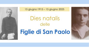 G. “Siate degne Figlie di San Paolo” (cf FSP34 p. 87). Questo invito, ripetuto spesso dal Fondatore, risuona per noi con particolare forza. E’ il giorno della riconoscenza e della lode per le “abbondanti ricchezze di grazia” che ci sono state riversate in dono nei 96 anni di vita della Congregazione. Ed è anche il… Leggi tutto »
