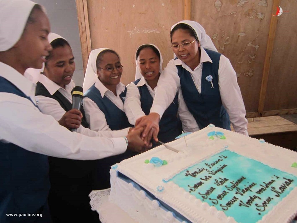Com o coração pleno de alegria e de gratidão, juntamente com sacerdotes, religiosos, cristãos, conhecidos, colaboradores e parentes, foi comemorado em Antananarivo, capital de Madagascar, o Centenário de fundação das Filhas de São Paulo. A celebração eucarística, presidida pelo assistente nacional dos religiosos, foi enriquecida também pela primeira profissão de uma noviça e pela ação de graças pela profissão perpétua que quatro irmãs malgaxes fizeram na Itália no mês de junho.