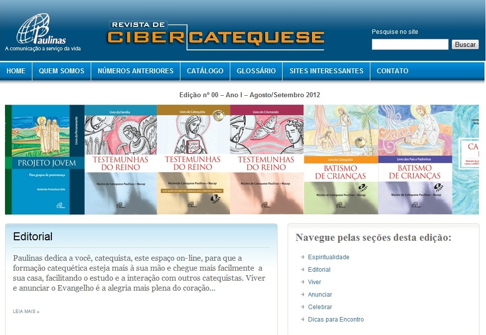 On 20 August 2012, the date on which the Pauline Family celebrated its 98th anniversary of foundation, the Daughters of St. Paul of Brazil launched their new online magazine, Cibercatequese (Cybercatechesis) (www.cibercatequese.com.br)–a service aimed at all the country’s catechists and pastoral workers.