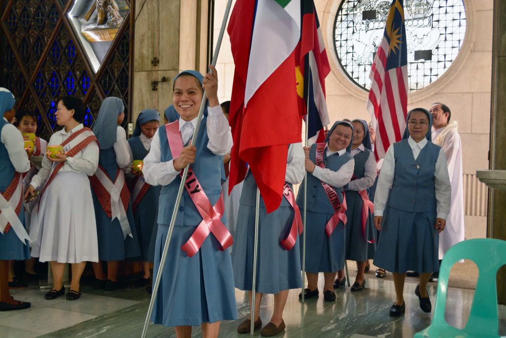 Entre os símbolos apresentados no altar estavam as bandeiras dos quatro países que hoje compõem a província do PMPT (Filipinas, Malásia, Papua Nova Guiné, Tailândia) e da Itália, país de proveniência das três primeiras irmãs.