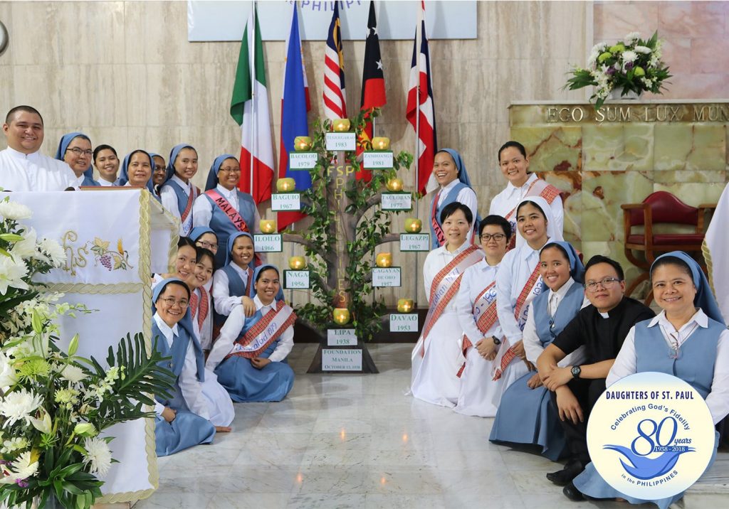 Em janeiro de 1937, Pe. Alberione enviou as irmãs: Elena Ramondetti, Maria Cleofe Zanoni e Edvige Soldano para a China. As jovens missionárias não puderam lá permanecer por causa da guerra sino-japonesa. Foram então para a Índia, mas também lá não puderam ficar. Partiram para as Filipinas, chegando lá em 13 de outubro de 1938, para permanecer até o fim da guerra, e retornar à China. 80 anos se passaram!