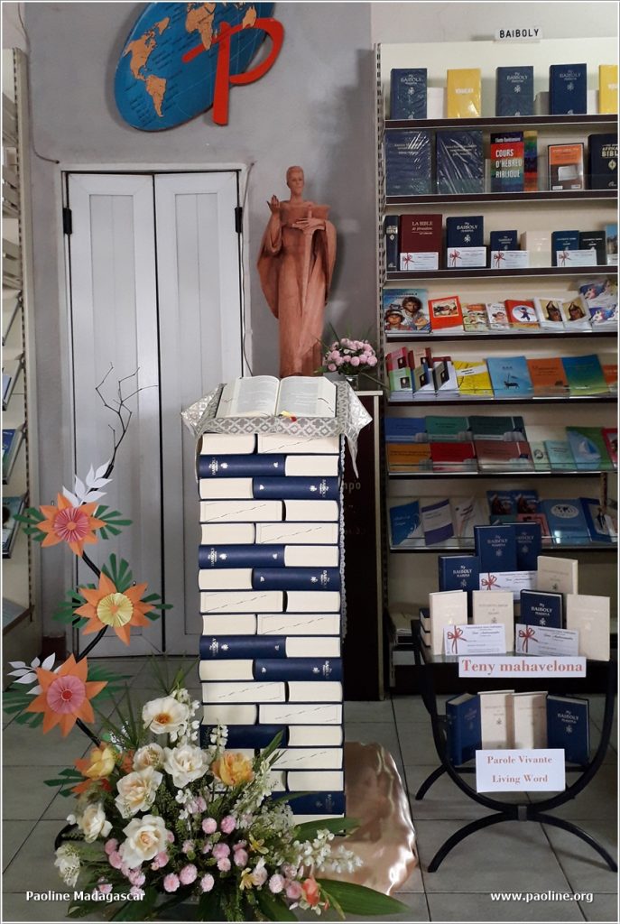 Les Paoline du Madagascar ont accueilli avec joie le Dimanche de la Parole instituée par Pape François. Une initiative importante pour porter la Bible en chaque milieu et situation. Après avoir publié en malgache et en français la Lettre apostolique en forme de Motu proprio Aperuit illis, chaque Librairie Paoline s’est engagée, à travers vitrines, radio, réseau social, à faire connaitre les publications sur la Parole de Dieu.