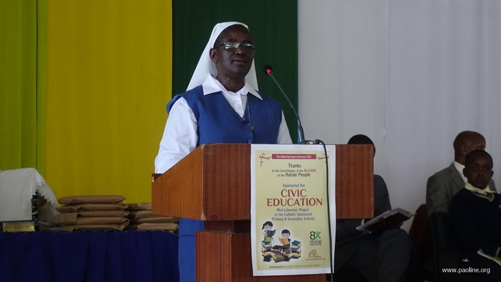 Le cardinal John Njue, archevêque métropolite de Nairobi, dans son intervention d’ouverture a souligné l’importance de préparer aujourd’hui les leaders qui nous guideront demain. Pour les Paoline les rencontres ont été des moments précieux pour présenter le projet Education Civique dans les écoles. L’Eglise Catholique Italienne, à travers l’organisation du 8X1000 a financé 8.193 mini-bibliothèques composées par livres, DVD et cahiers intelligents.