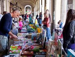 The fifth annual “Portici di carta” (Paper Arcades)–a 2 km.-long book fair–just ended in Turin. Portici di carta is a unique and creative initiative in the crowded field of Italian book exhibits. The original intent of the event was to link the theme of books to an architectural “jewel” of the city, namely: the 14 kilometers (8½ miles) of interconnecting arcades that run through its historical center. Thus, for two days, books changed the city’s street names, becoming: Science Street, Art Street, History Street, etc., according to the content of the book stalls lining them. The Fair also offered its visitors meetings with authors, theatrical performances, concerts and many other cultural events.