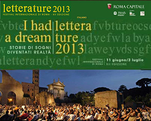 Já completa 12 anos o Festival internacional de Roma “Literaturas”, junto à basílica de Massenzio, desde junho de 2013. Um calendário de dez noites ao redor do tema I had a dream … Histórias de sonhos que se tornaram realidade, no ano do 5º aniversário do inesquecível discurso “I have a dream” de Martin Luther King a Lincoln Memorial de Washington.
