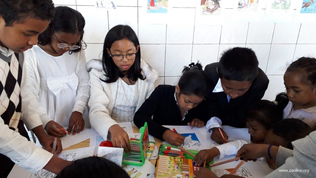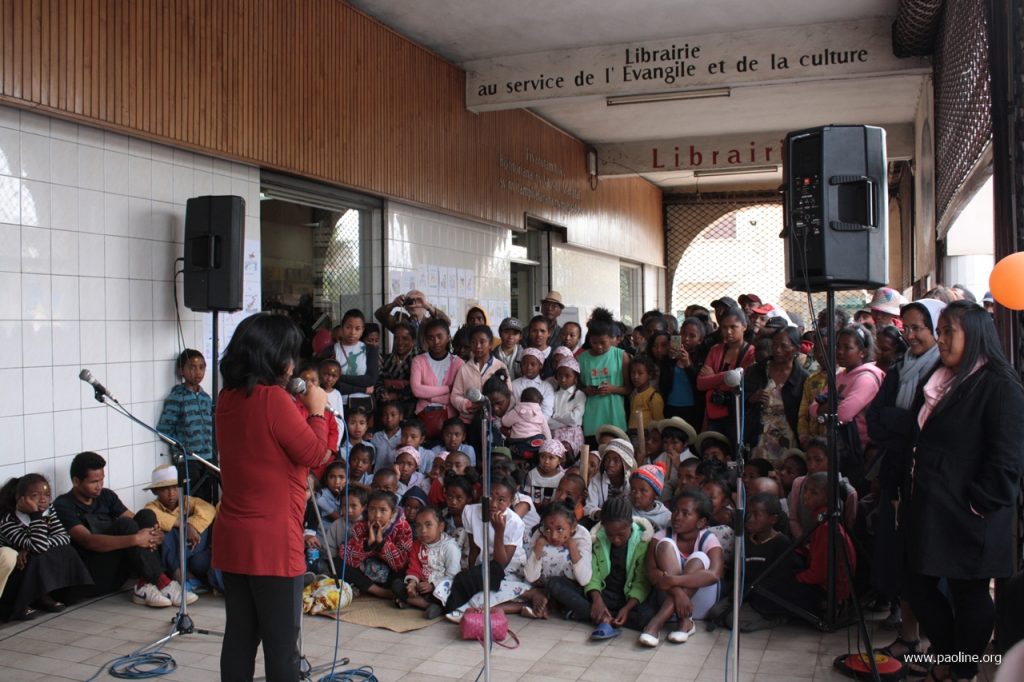 Le but principal de l’évènement a été celui de réveiller dans les enfants l’amour à la lecture et accéder à la culture de leur propre pays à travers la langue-mère. Pour rejoindre ceci, la foire a été accompagnée par des moments d’animation, lecture d’histoires et exécutions musicales, auxquelles ont participé les étudiants de quelques écoles élémentaires de la ville. Aux enfants a été donnée aussi la possibilité de peindre avec l’intention de faire exprimer leurs propres qualités artistiques. Une activité à laquelle ils ont adhérés avec grande passion et créativité. L’évènement a été précédé par une conférence presse réalisée auprès de la Paoline d’Analakely.