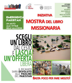 Di me sarete testimoni dice lo slogan della Giornata Missionaria Mondiale celebrata quest’anno domenica 23 ottobre. Le Paoline di Brescia hanno desiderato vivere questa ricorrenza insieme alle comunità parrocchiali e con un desiderio nel cuore: essere vicine con la preghiera, il ricordo e le offerte alla popolazione del Pakistan, colpita da gravi alluvioni.