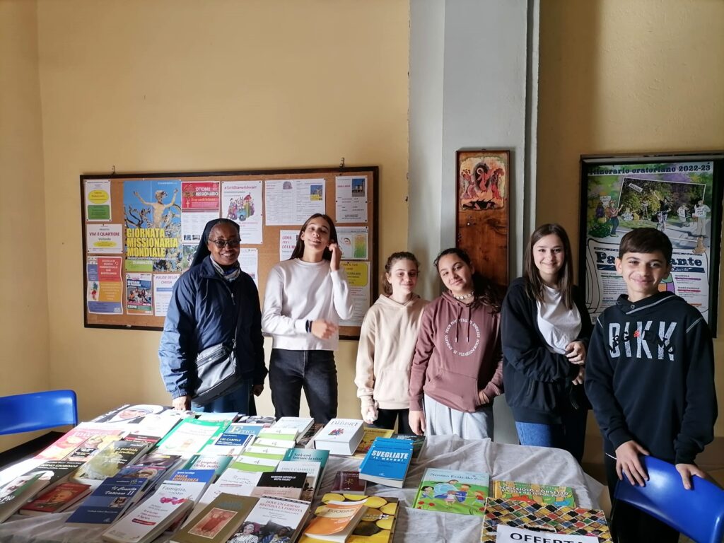 Per condividere lo slancio missionario la Libreria Paoline ha dato vita ad alcune iniziative. Innanzitutto è stata proposta alle parrocchie una mostra del libro missionaria. Sono stati offerti alcuni libri alle parrocchie che hanno aderito: parroci e volontari hanno preparato banchetti con i libri in modo che le persone potessero lasciare un’offerta per il Pakistan e scegliere una buona lettura. Proprio perché la testimonianza è importante, la comunità ha invitato due missionarie non Italiane che attualmente vivono in Italia: sr Emma Umurerwa del Ruanda e sr Anna Matikova della Slovacchia. Loro hanno visitato tre parrocchie per dare un volto personale all’esperienza missionaria, raccontando la loro storia durante le varie celebrazioni eucaristiche e animando insieme alle altre sorelle e ai collaboratori il banco dei libri. Sr Emma e sr Veronica Bernasconi hanno potuto incontrare anche un gruppo di ragazzi del catechismo e riflettere insieme che cosa significa oggi essere una missione, una buona notizia per gli altri, cioè un vangelo vivente. Infine sr Veronica ha condiviso durante la messa di adolescenti e giovani in un’unità pastorale la sua piccola esperienza in Africa.