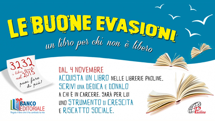 The initiative’s provocative slogan, “Good Escapes,” wants to highlight the fact that books are food for the mind and heart. When made available to prisoners, they can help them escape the confines of their cells and point out to them new horizons of freedom and dignity. The FSPs hope that their Book Bank Project will not only offer people the chance to express their solidarity with the incarcerated, but that it will also help them become more aware of the conditions of life in one of the existential peripheries that Pope Francis has repeatedly urged everyone to take notice of and aid.