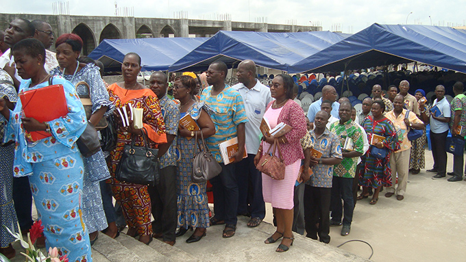O encontro ocorreu no grande terreno da catedral de Yopougon, vizinho à Livraria Paulinas. Mais de mil pessoas conseguiram espaço, sentadas sob as tendas que as protegiam do forte sol de abril. Os participantes conheceram a experiência de P. Richard Baawobr, M. Afr. (dos Padres Brancos), que partilharam com eles suas atividades pastorais no Congo (RD), na Tanzânia e no Quênia.