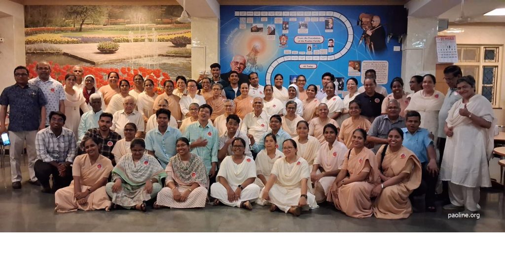 Em Bandra, Mumbai, as comunidades de Bandra, Borivli, Pune e Vasai se reuniram: aproximadamente 70 membros participaram do evento. O dia foi aberto com uma oração e jogos de conhecimento, seguidos de uma mesa redonda sobre o tema Espiritualidade, Carisma e Apostolado Paulinos, animada com seis testemunhos das três Congregações.