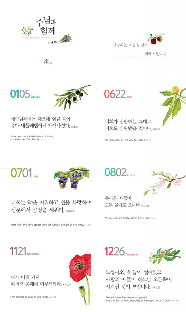 Sr Helena a realisé ces dessins pour illustrer le calendrier de table 2020 du titre Avec le Seigneur qui, ensemble à l’agenda de poche du titre Avec la Parole, sont édités annuellement par les Paoline de la Corée. Ces deux produits, grâce aux précieuses peintures originales dont ils sont miniés, se prêtent pour un raffiné cadeau du nouvel an.