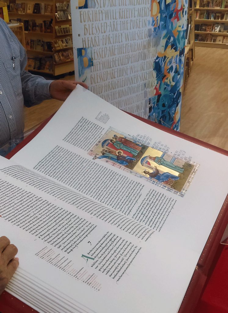 A realização desta Bíblia escrita à mão pelos monges Beneditinos da Abadia de Saint John, um grande mosteiro localizado próximo ao Collegeville, no Minnesota, é a primeira após a descoberta da imprensa. Além da exposição houve sessões de formação e diálogo, palestras sobre como rezar os salmos com Cristo e uma experiência da Lectio divina orientada por irmãs e postulantes.