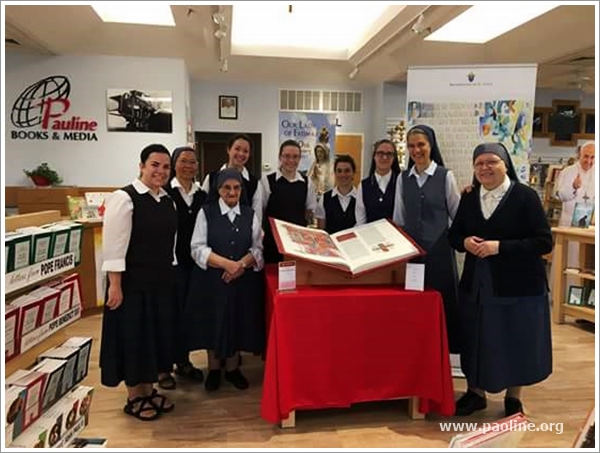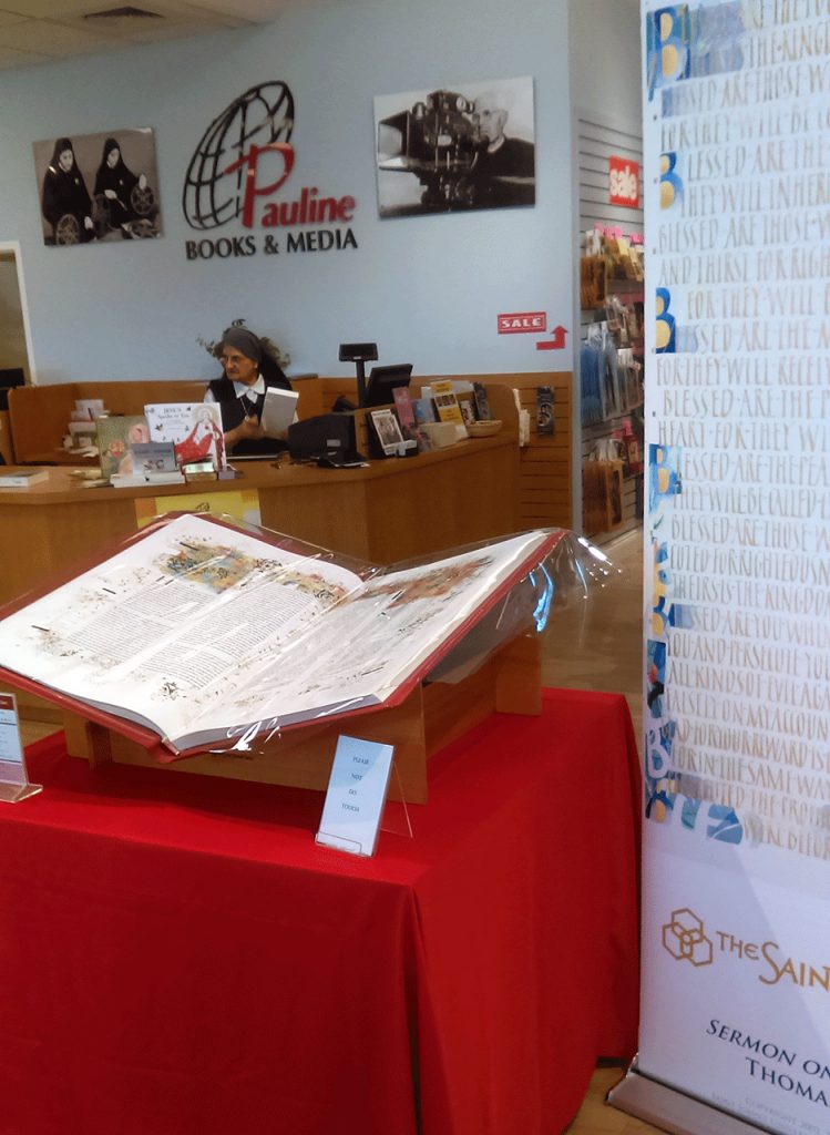 O volume do Evangelho e dos Atos dos Apóstolos foi disponibilizado pela diocese de Saint Louis para ser exposto na Paulinas Livraria, um sinal de grande confiança e de reconhecimento do compromisso com a Palavra, centro e vida da missão paulina.