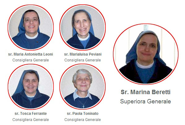 Conselheiras gerais: Ir. Antonietta Leoni, Ir. Marialuisa Peviani, Ir. Tosca Ferrante, Ir. Paola Toninato.