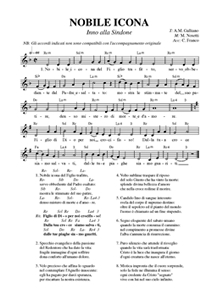 Es de Sor Anna Maria Galliano, Hija de San Pablo ,el texto oficial del Himno de la Sábana Santa, expuesta en la Catedral de Turín del 10 de abril al 23 de mayo.