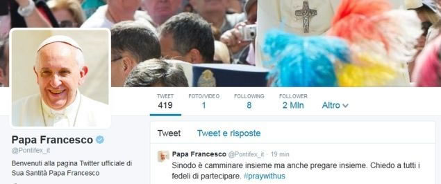 Pape Bergoglio est toujours plus social. Les follower des neufs accounts Twitter de pape François ont dépassés la quota record de 16 millions. Les plus suivis sont ceux en italien, espagnol et anglais. Et à surprise l’account en latin dépasse celui en langue arabe.