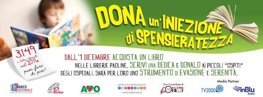 La iniciativa fue presentada en Roma, en el Hospital Santo Spirito en Saxia, el 20 de noviembre. En esta ocasión, la Presidente de Paoline Onlus, entregó a AVO, un paquete con libros de regalo, para ser utilizado con los pacientes del hospital o para abastecer la biblioteca.