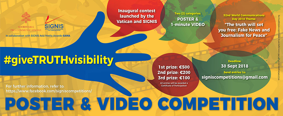 – Um concurso internacional, associado ao Dia Mundial das Comunicações Sociais. Ver as informações sobre os requisitos de participação e direitos de propriedade em: facebook.com/signiscompetitions/.