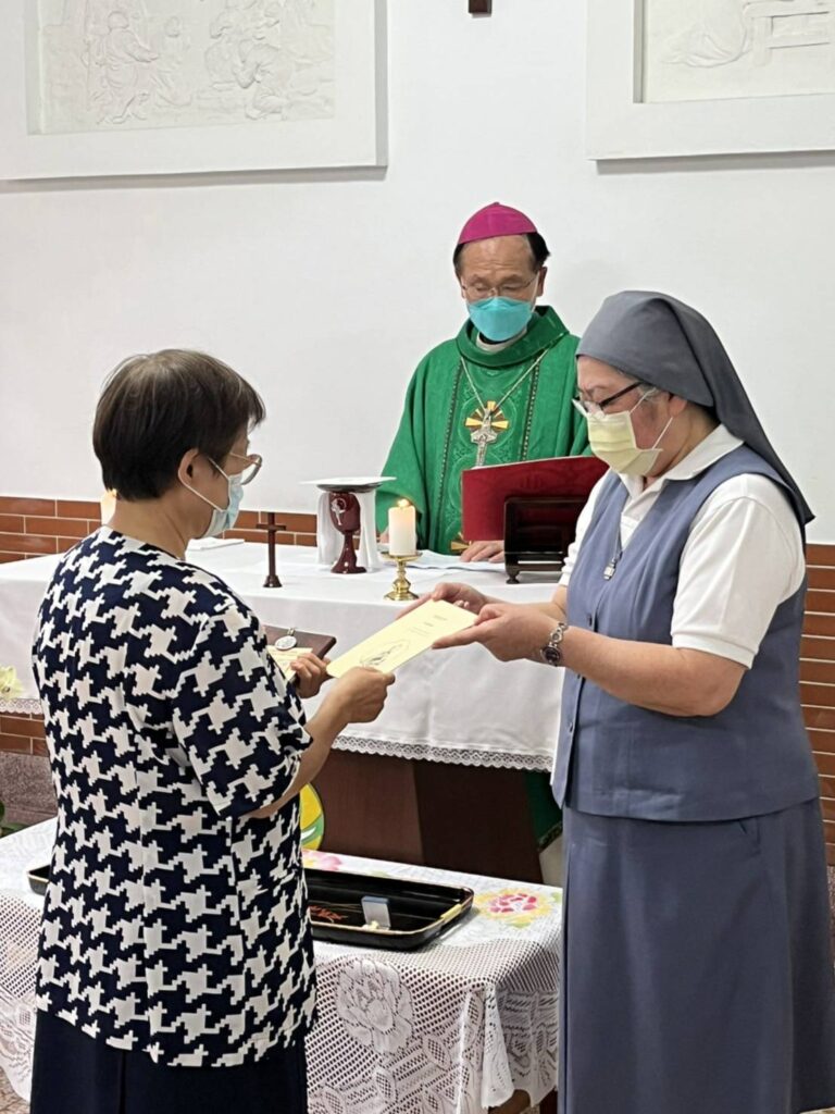 No dia 30 de outubro, a Família Paulina celebrou em todo o mundo a Solenidade de Jesus Mestre. Na pequena comunidade das Filhas de São Paulo de Taichung, este dia assumiu um particular tom de alegria. O clima festivo se intensificou com a chegada das Irmãs de Kaohsiung, Taipei, e de numerosos Cooperadores que se reuniram na espera do Bispo e de dois novos Cooperadores Paulinos. Sr. Zhuo Ming Hong Francesco e Sra. Zong Fang Xue Joana d’Arc, que durante dois anos de formação se prepararam para pronunciar a Promessa de viver e dar a Jesus Mestre Caminho, Verdade e Vida em sua realidade. Após a Missa, o Sr. Francesco agradeceu as Paulinas de Taichung pelo processo de aprofundamento recebido através dos vários subsídios e preciosas instruções. Um fio vermelho foi traçado pelo Senhor para ajudá-los a descobrir a sua vocação como leigos empenhados em usar as novas mídias sociais para tornar Deus conhecido, pois muitos ainda não o conhecem.