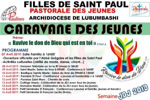 Les Filles de Saint Paul de la République Démocratique du Congo, dans la communauté de Lubumbashi, en collaboration avec l’Archidiocèse, elles ont organisé la Caravane de Jésus. Une initiative à l’enseigne de l’An vocationnel de la Famille Paulinienne qui répond à l’engagement des Filles de Saint Paul présentes en Afrique-Madagascar: faire quelque chose pour les jeunes dans le monde où nous vivons.