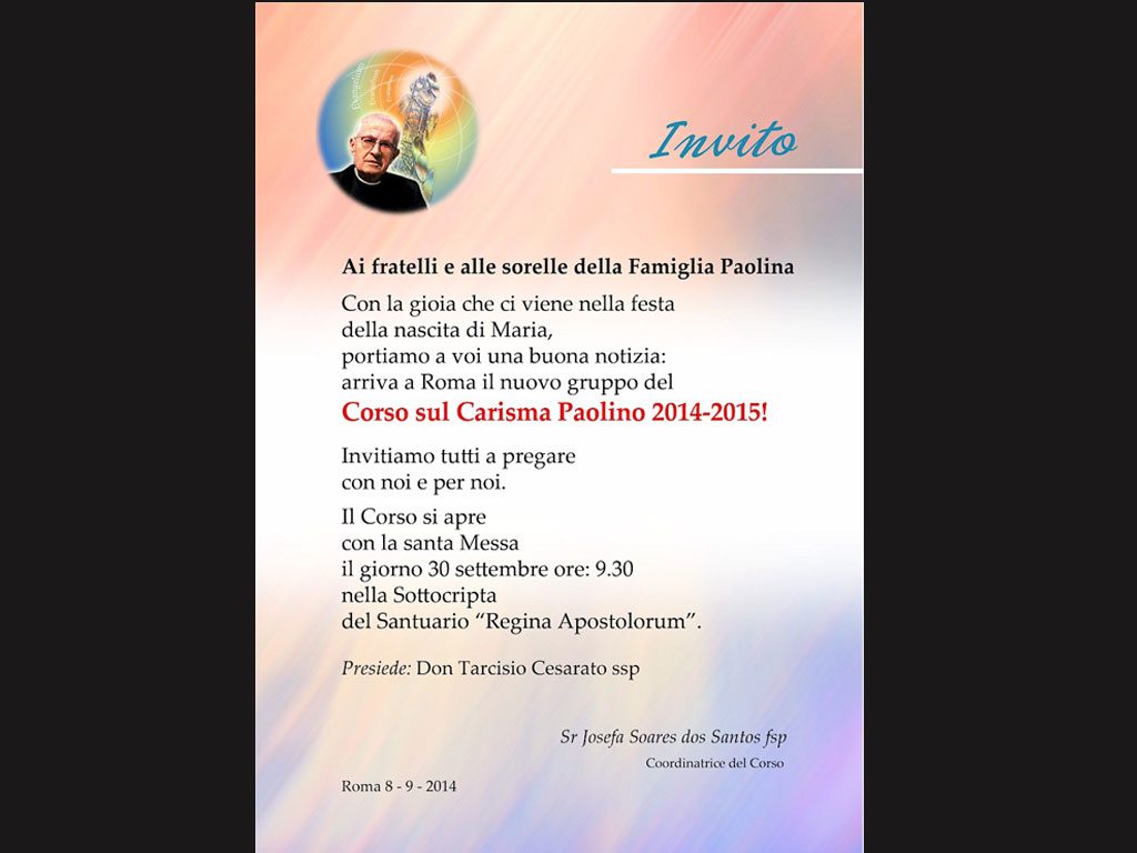 Apertura Corso di formazione sul carisma della Famiglia Paolina 2014-2015