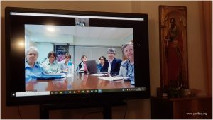 A ideia de equipar a sala de reuniões da Casa geral para encontros online nasceu antes da epidemia de coronavírus, com a opção de investir em multimídia, mostrou-se realmente providencial neste momento de isolamento forçado e dos o problemas de não poder viajar mudou-se em oportunidade para explorar outras modalidades de estar presente e compartilhar.