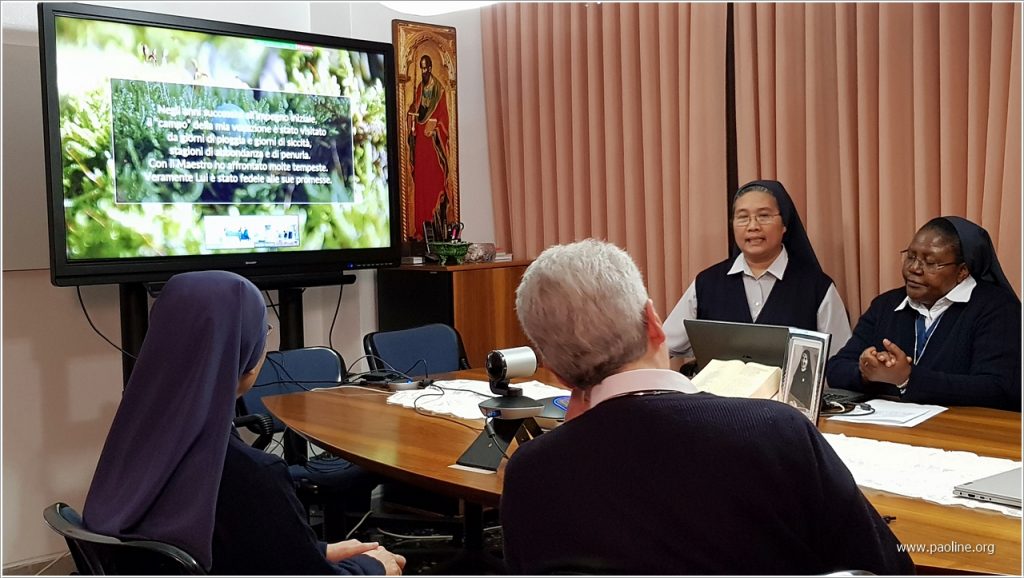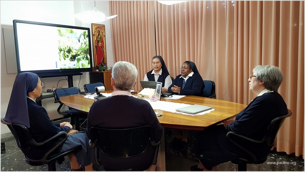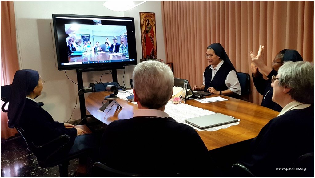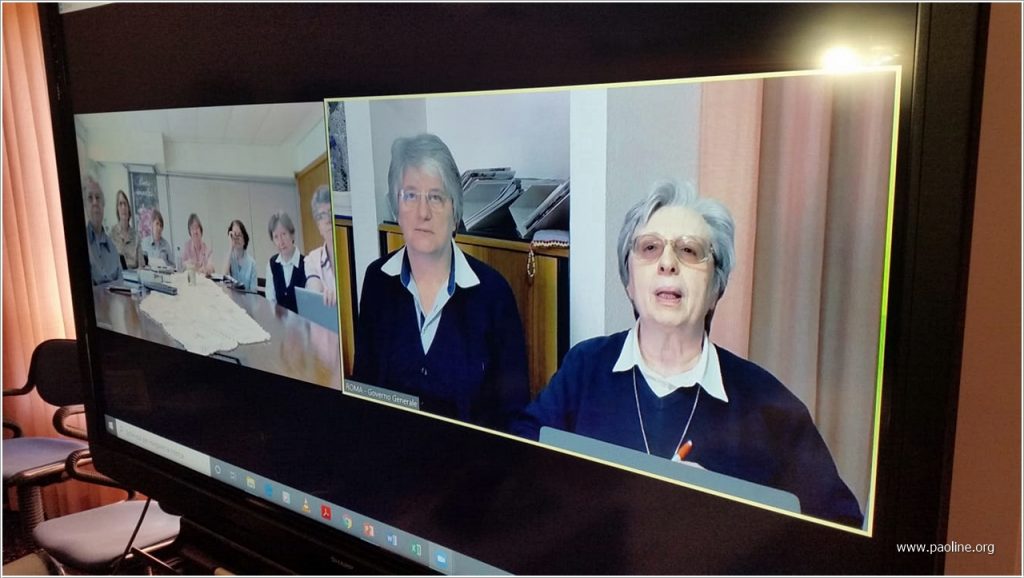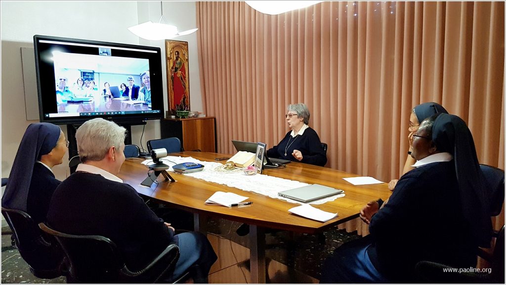 De 9 a 11 de março de 2020, o Governo Geral fsp realizou um encontro de formação on-line com o novo governo provincial do Brasil sobre o tema: Servir a comunhão, animar a missão. As irmãs do governo da província brasileira viveram com entusiasmo essa possibilidade, da qual tiveram ideias e incentivos para realizar, por sua vez, encontros online com comunidades e livrarias da Província. De fato, em poucos dias, dispuseram não apenas relatórios e subsídios úteis para os vários aspectos de início de seu serviço de autoridade, mas também de momentos de diálogo e intercâmbio de ideias com a Superiora Geral, as Conselheiras encarregadas da animação, a Secretária e a Ecônoma Geral para suas áreas de competência. Isso não seria possível com uma única viagem ou visita local.