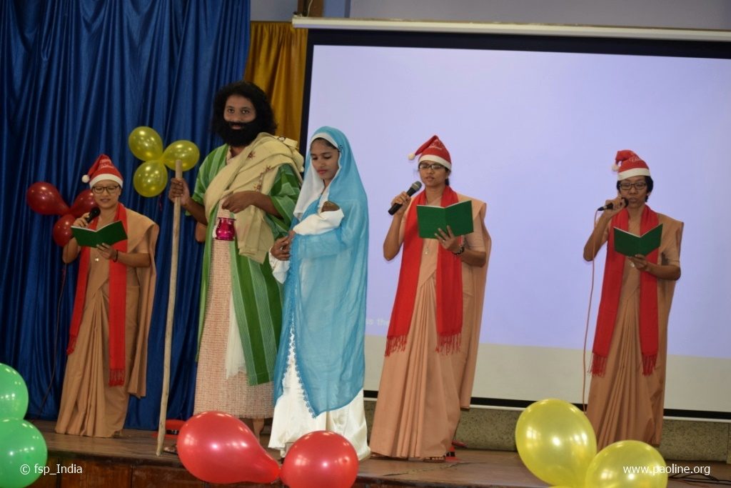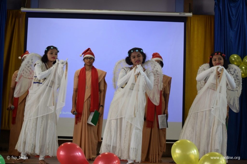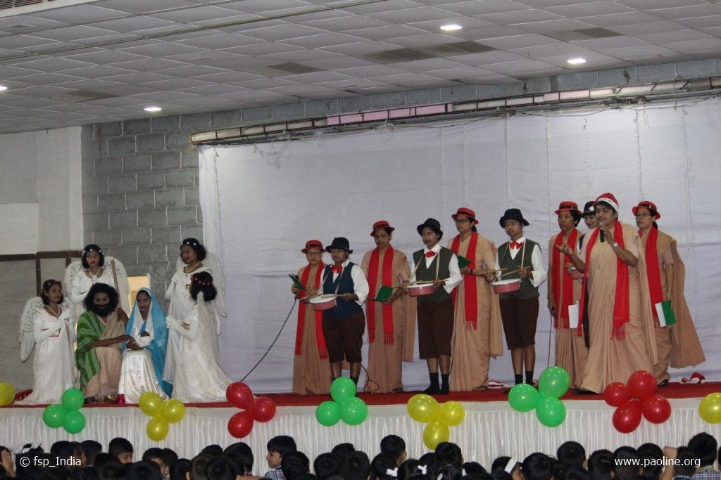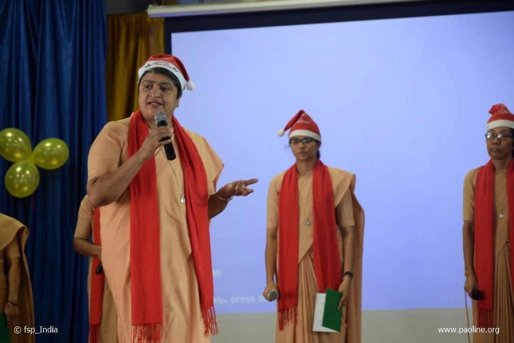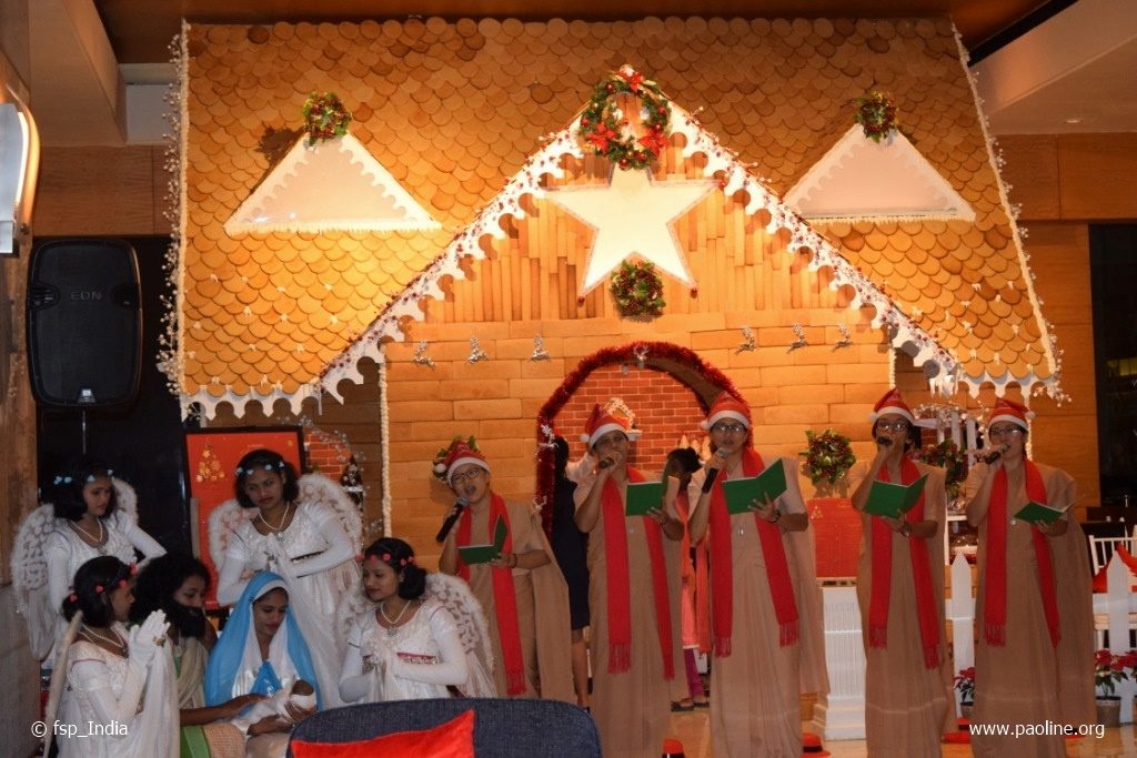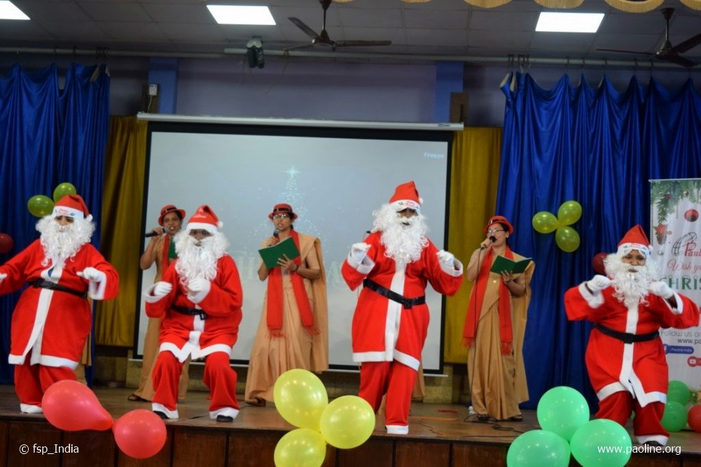 Les Filles de Saint Paul de Bandra organisent chaque année un spectacle musical, en préparation à Noël, en diverses paroisses et écoles de l’archidiocèse de Bombay. L’entier programme, réalisé par les postulantes, comprenait l’annonce à Marie, la naissance de Jésus, la scène du Père Noël, la percussionniste Boy, la dance des anges, la renne au nez rouge de Rudolph etc. Chaque chant était accompagné par une brève, claire et significative introduction.
