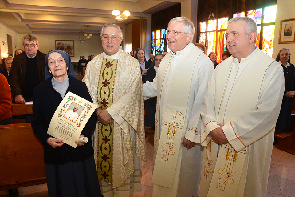 Sr Liliana Toni il 4 dicembre ha compiuto ad Alba 100 anni, festeggiata da sr Anna Maria Parenzan, superiora generale, e da sr Dolores Melis, superiora provinciale, dalle sorelle della comunità, dal vescovo di Alba, monsignor Giacomo Lanzetti, da sacerdoti paolini e parenti, tra cui la sorella di quasi 98 anni.