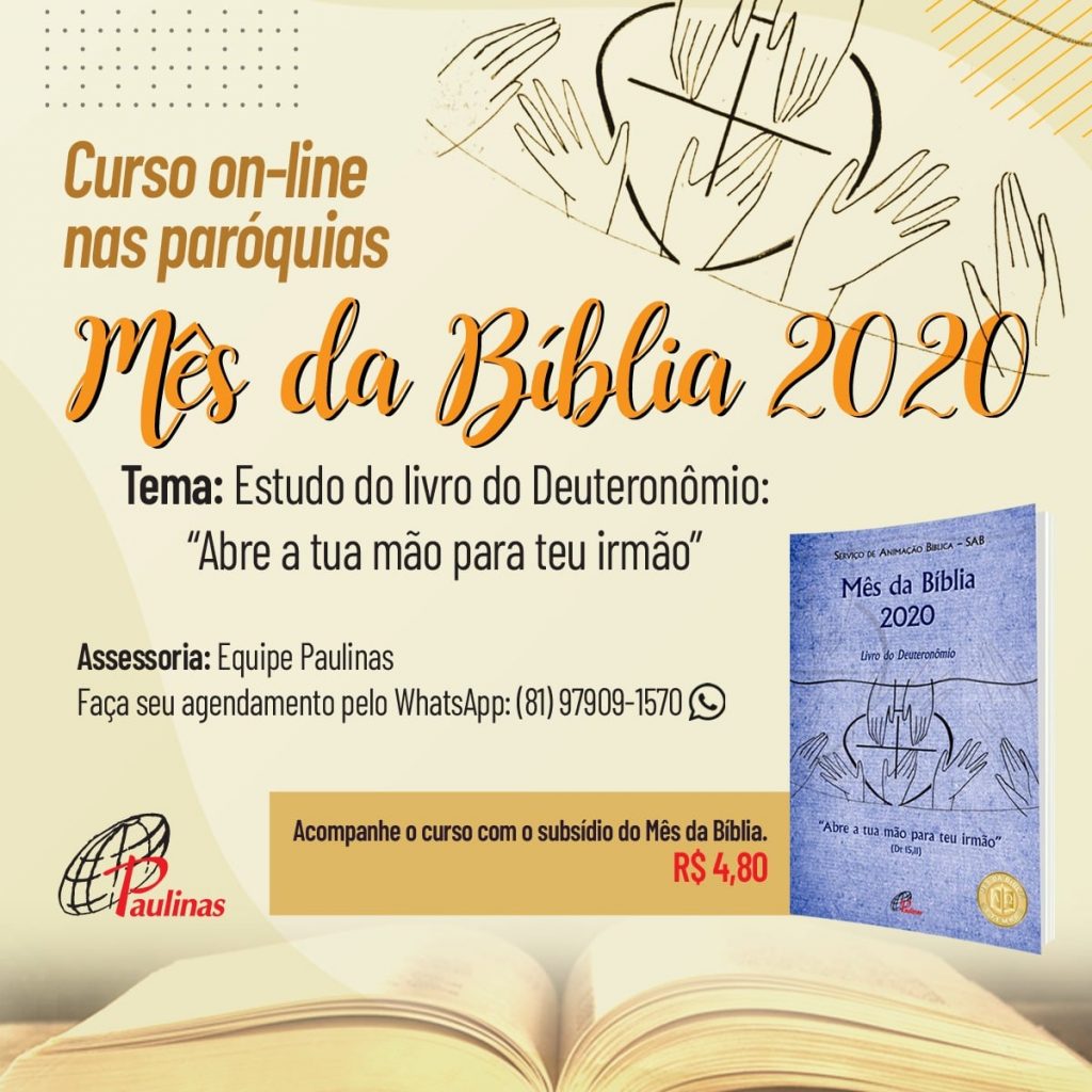Cette année, dans la célébration du jubilé d’or de l’initiative, le mois de la Bible a eu comme thème: “Ouvres la main à ton frère” Dt 15,11, inspiré au livre du Deutéronome. Actuellement, outre au Brésil, divers payes de l’Amérique Latine et de l’Afrique dédient le mois de septembre à la célébration de la Bible.