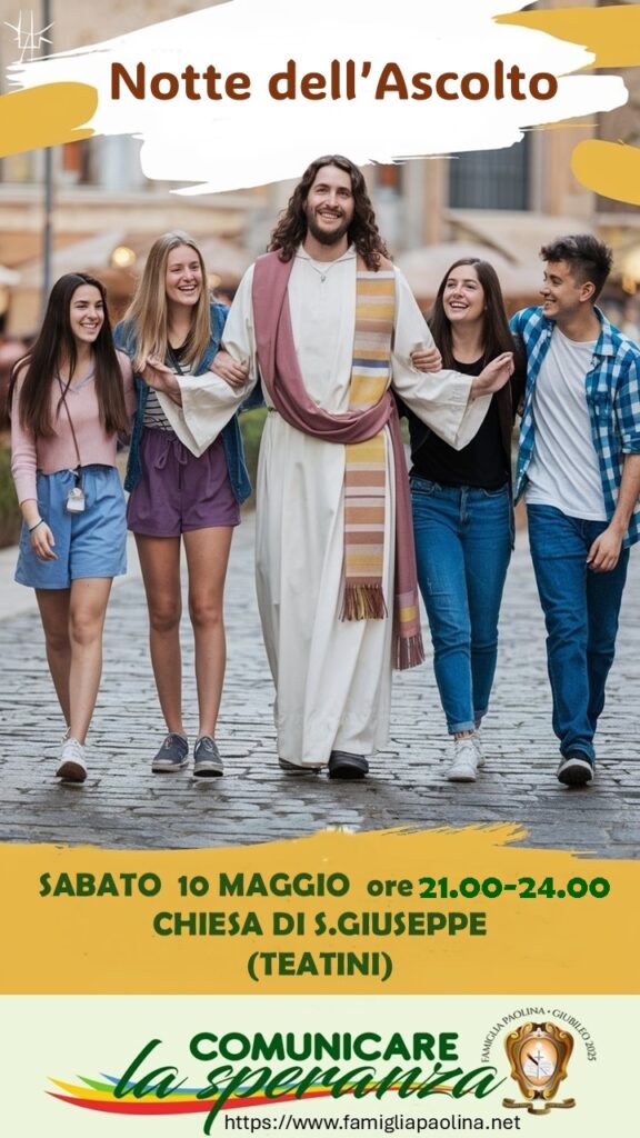 Sabato 10 maggio, la Famiglia Paolina attiva nel capoluogo siciliano, ha organizzato una Notte di Ascolto lungo via Maqueda, una delle strade più frequentate del centro storico, per incontrare giovani e passanti nel sabato sera cittadino. Il “popolo della notte” ha avuto la possibilità di ascoltare un tipo di musica diversa, lontana dagli eccessi della movida: un gruppo di Annunziatine, alcuni giovani con la chitarra e membri della Santa Famiglia hanno animato le vie circostanti con canti religiosi, invitando le persone a entrare nella Chiesa di San Giuseppe per vivere un incontro speciale.